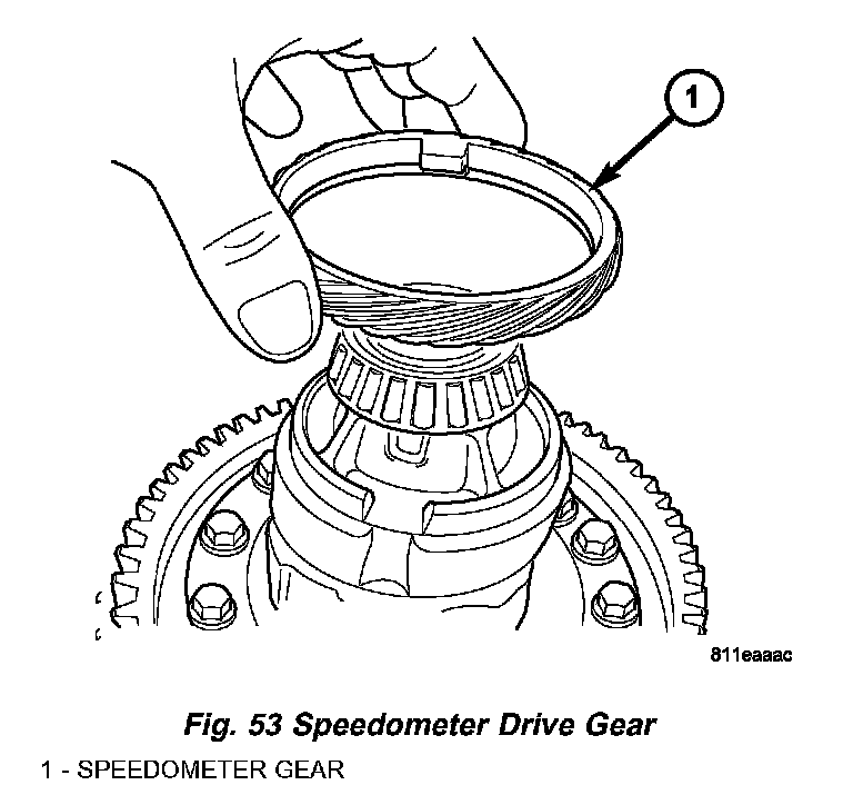 2. Using a suitable screwdriver, pry off and remove speedometer drive gear (Fig. 52) (Fig. 53).