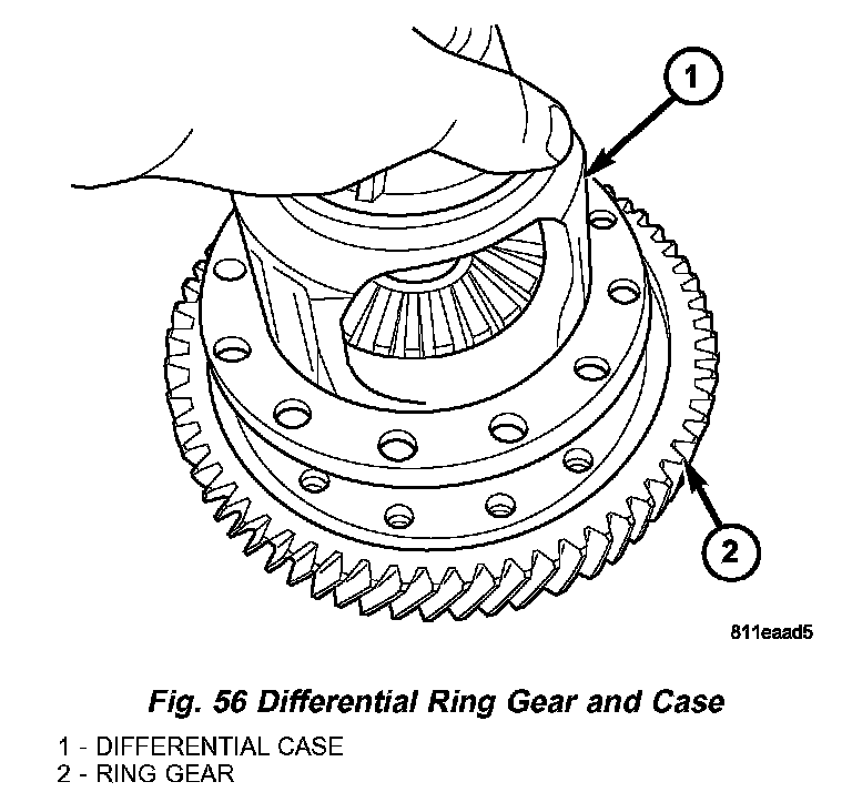 4. If servicing ring gear as well, remove remaining ring gear-to-case bolts and remove ring gear from case (Fig. 56).