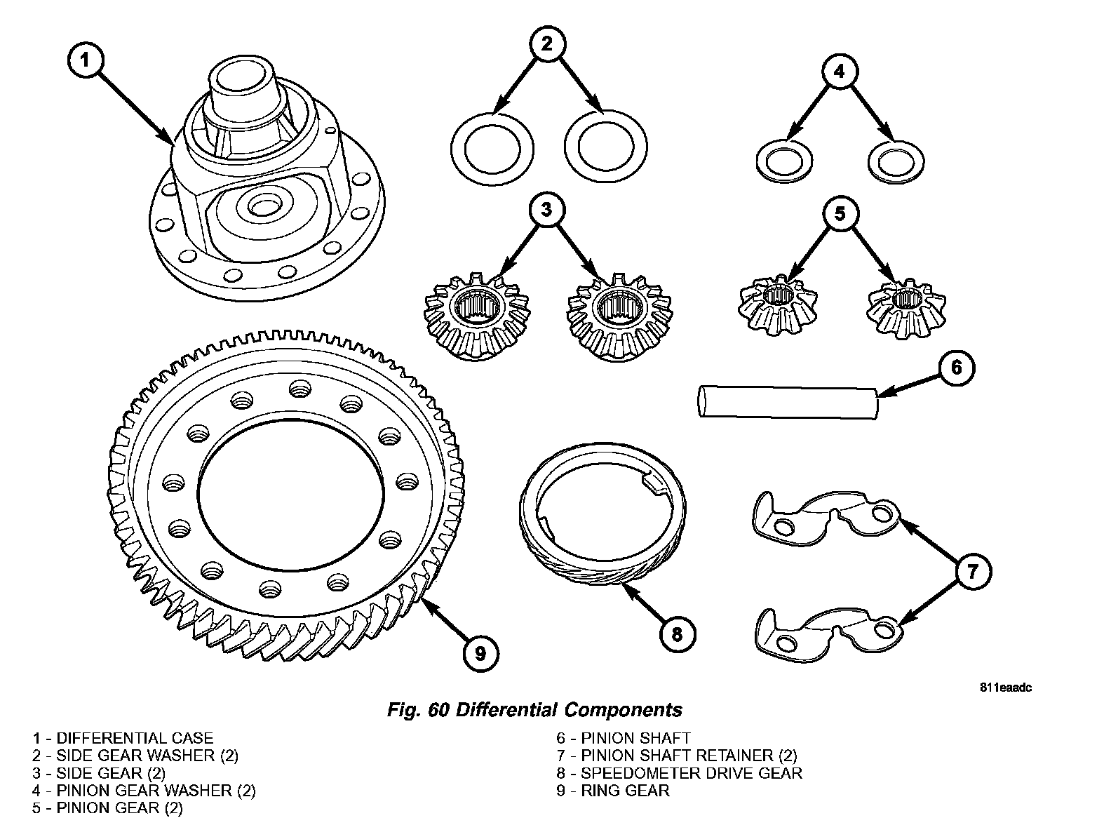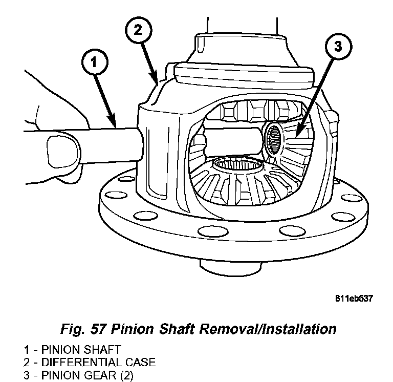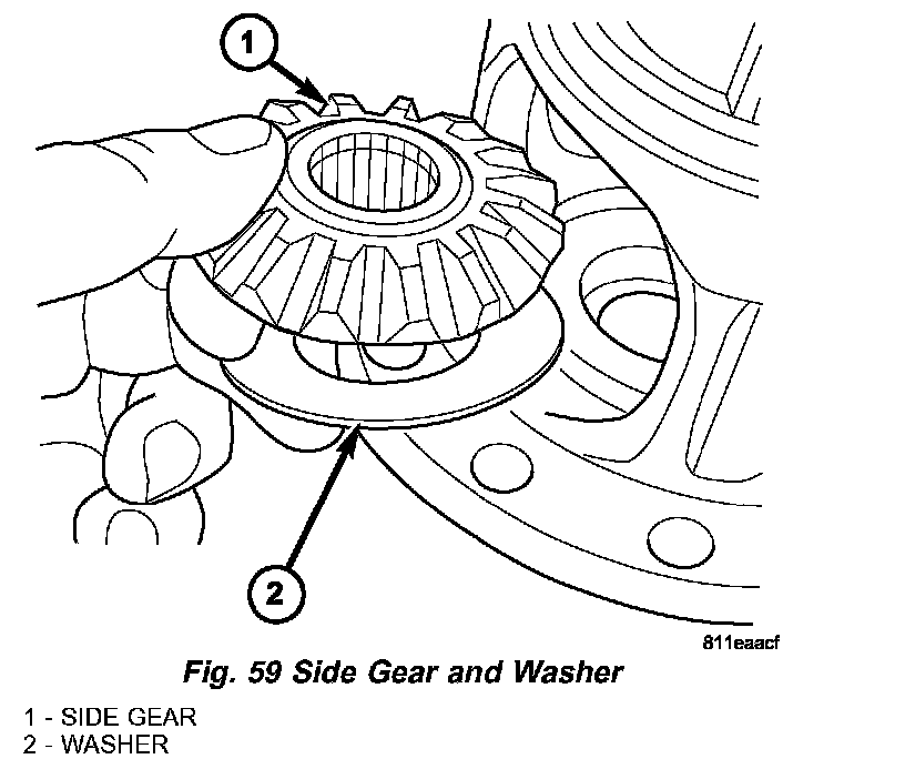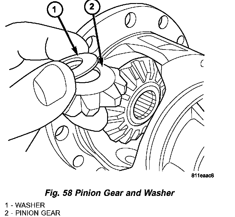 6. Remove pinion gears, side gears, and thrust washers (Fig. 58) (Fig. 59) (Fig. 60).