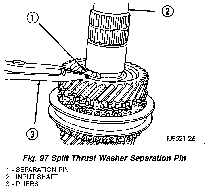6. Remove split thrust washer separation pin (Fig. 97).