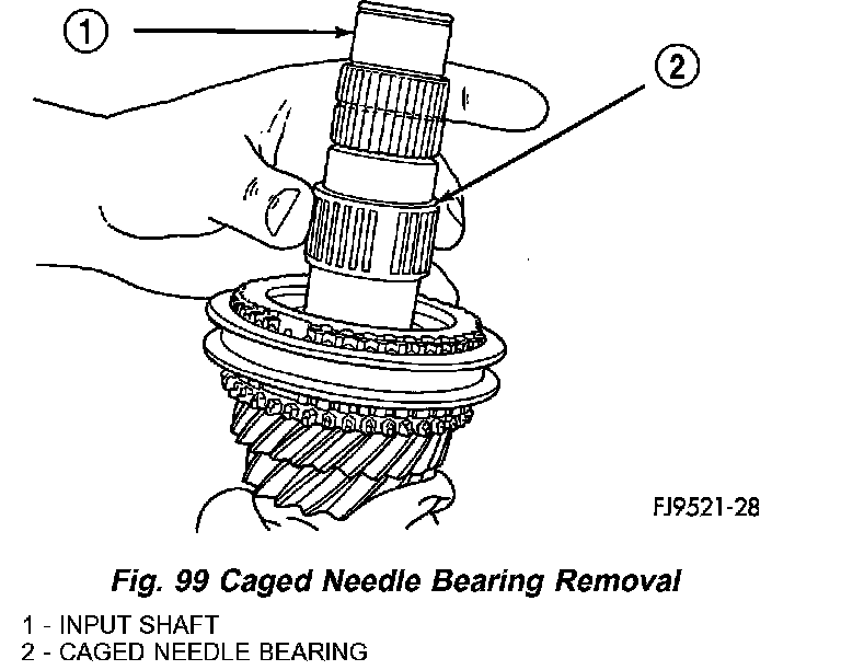 8. Remove 4th gear caged needle bearing (Fig. 99). Check the caged needle bearing for a broken retention spring.
