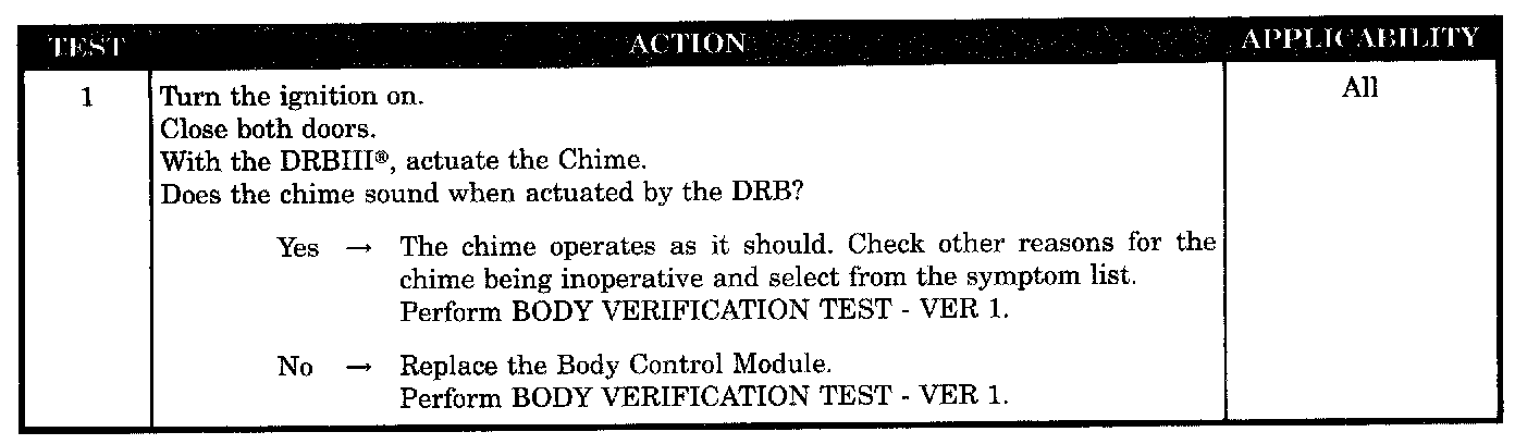 CHIME INOPERATIVE AT ALL TIMES