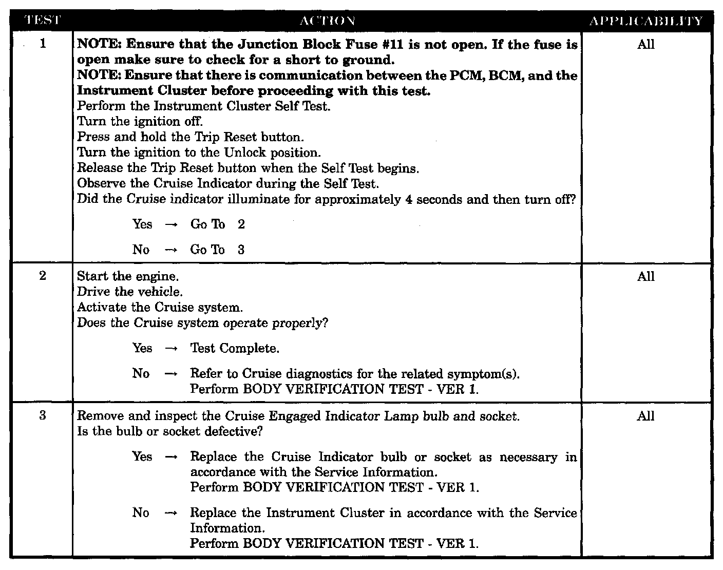 CRUISE ENGAGED INDICATOR INOPERATIVE