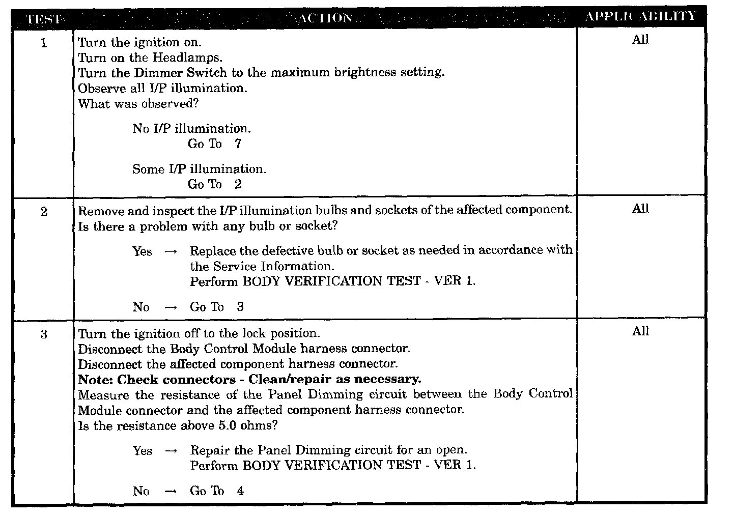I/P ILLUMINATION LAMPS NOT WORKING PROPERLY