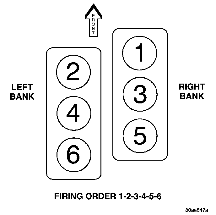 The cylinders are numbered from front to rear, with the right bank odd numbered, and the left bank even numbered. The firing order is 1-2-3-4-5-6.