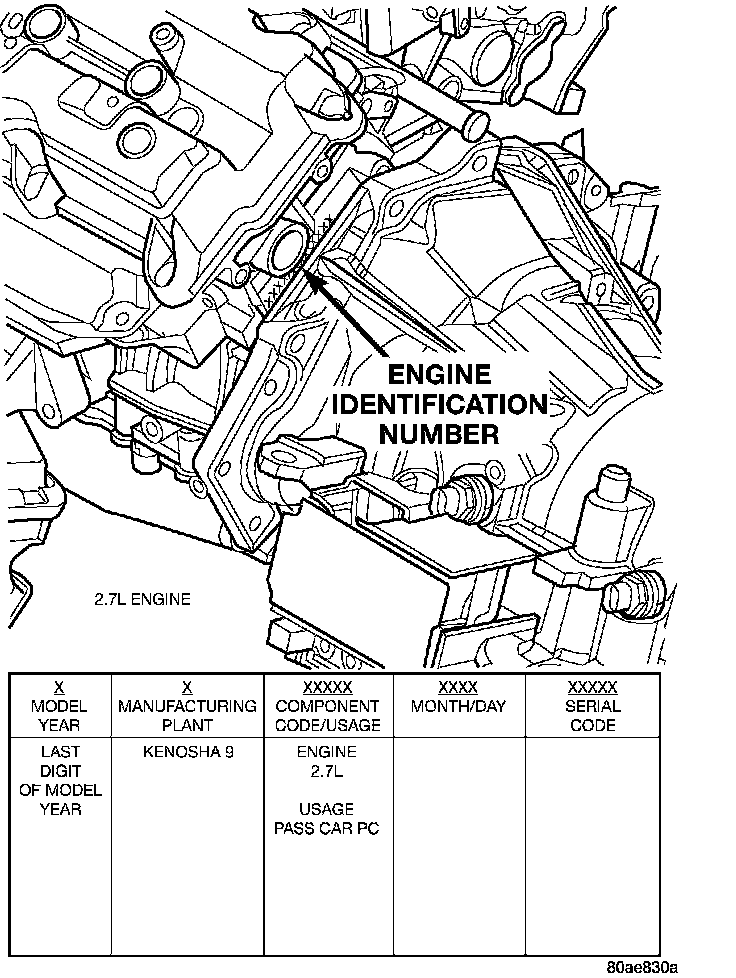 The engine identification number is located on the rear of the cylinder block just below the left cylinder head
