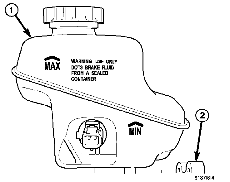 10. Check and adjust brake fluid level in reservoir (1).