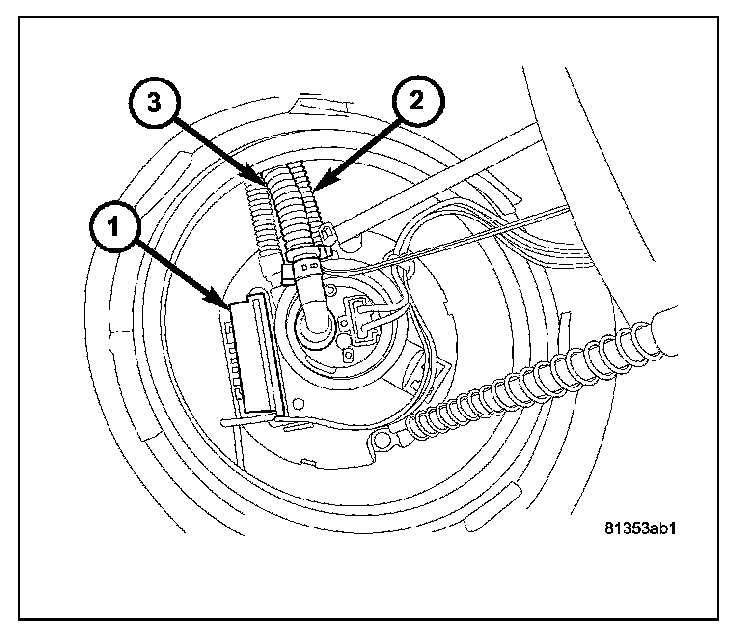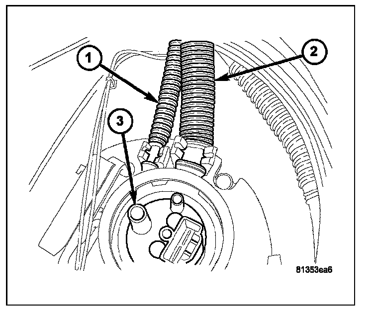 13. The module fuel level sending card (1). The fuel return lines (2). The fuel supply line (3).