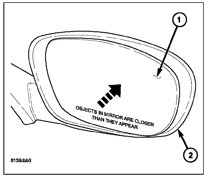 4. Verify retention of the mirror glass holder by gently pulling outward on the glass.