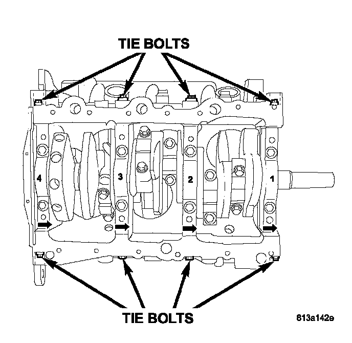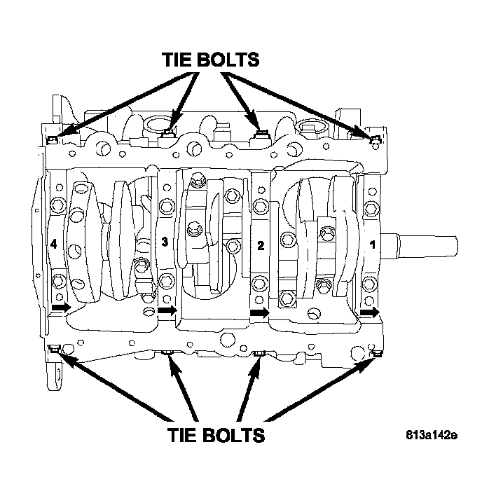 12. Install the main cap tie (horizontal) bolts and tighten to 28 Nm (250 inch lbs.).
