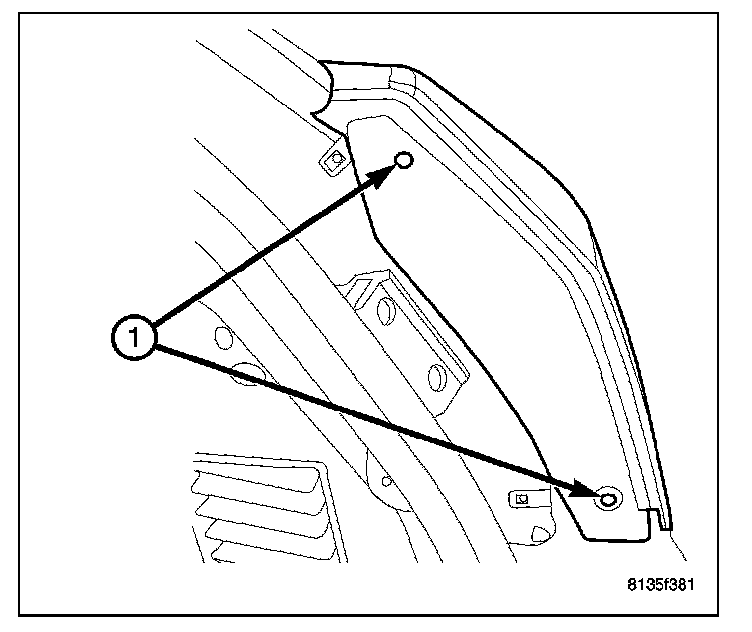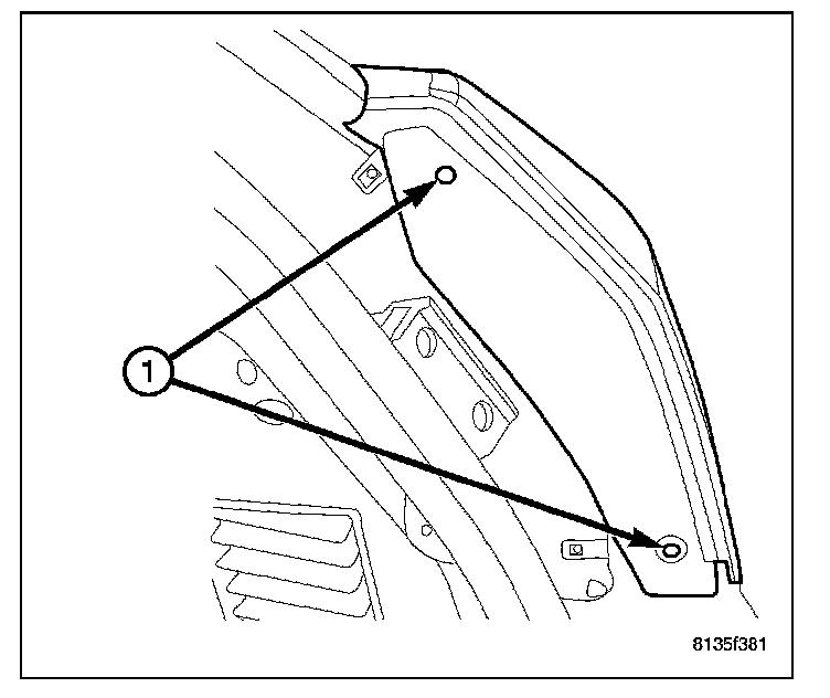 2. Remove the two push fasteners (1) in the liftgate opening.