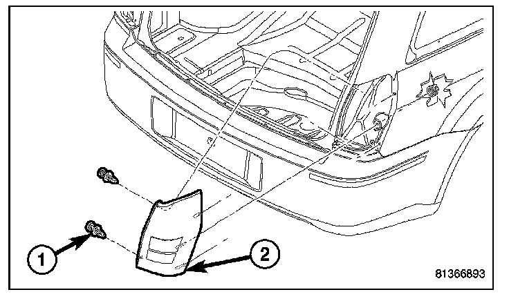 5. Pulling rearward, release the mounting tabs of the tail lamp unit (1).