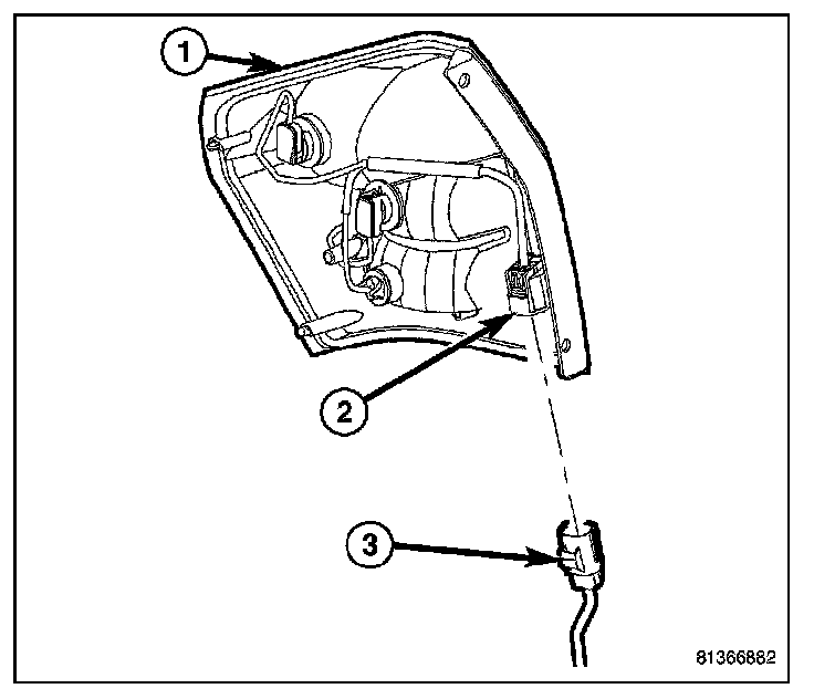 1. Connect the electrical connector (3) to the tail lamp unit (2).