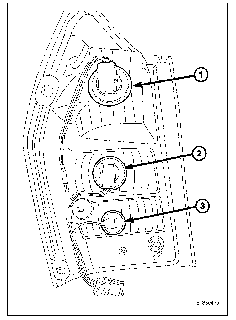 7. Twist counterclockwise to remove the Stop (1), Turn Signal (2), or Back-Up lamps.