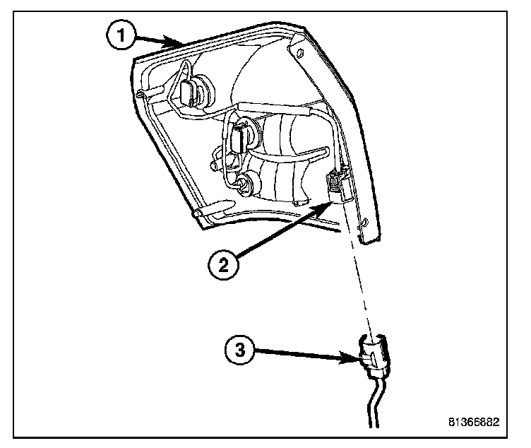 6. Disconnect the electrical connector (3) from tail lamp unit (1).