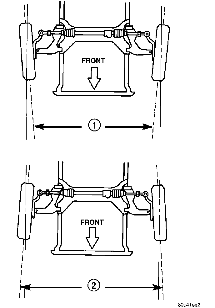 ^ Toe-out (2) is produced when the front edges of the wheels on the same axle are farther apart than the rear edges.