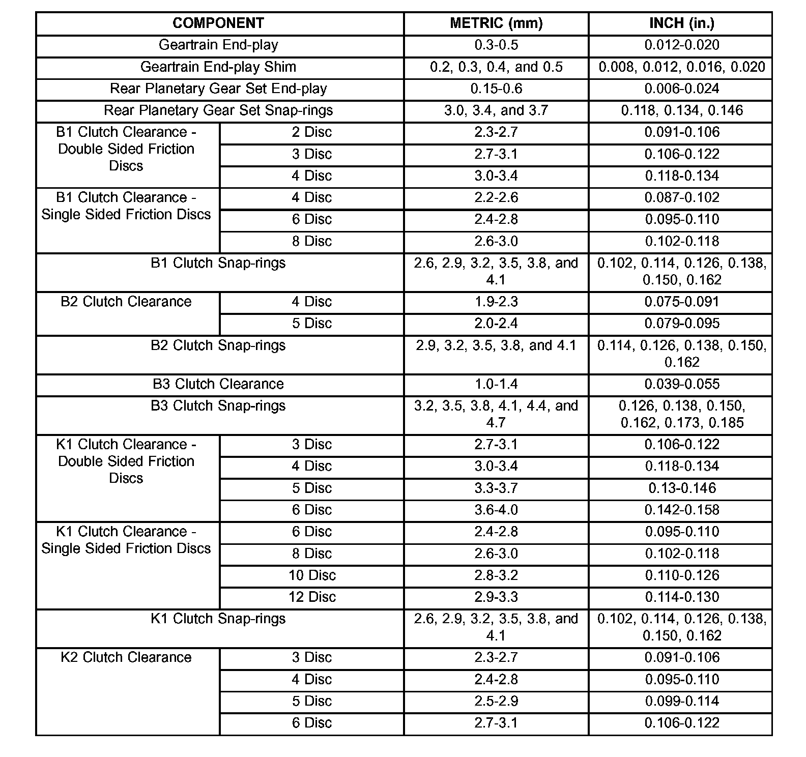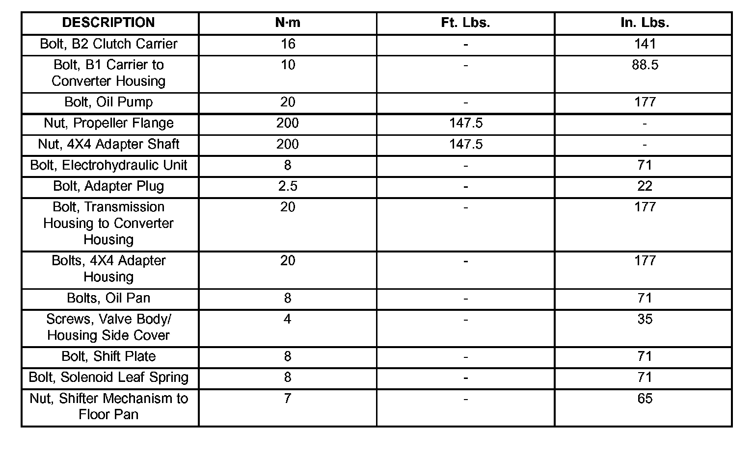 Torque Specifications: