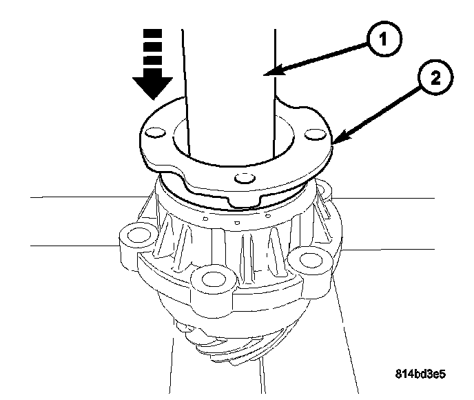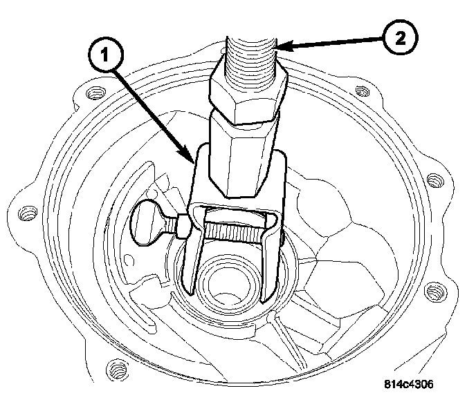 10. Using Tool L-4507 (1), press on pinion flange (2).