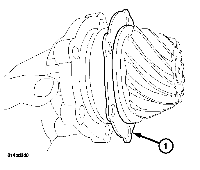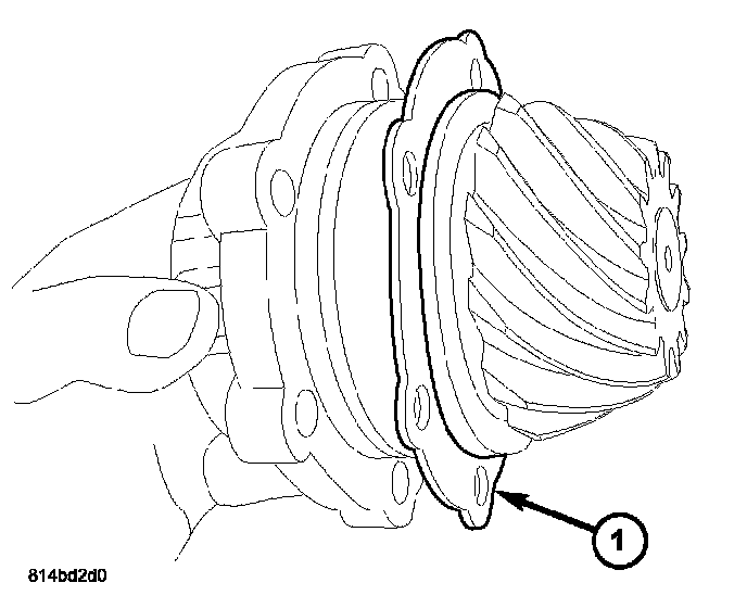 2. Remove pinion housing and depth shim (1) from axle assembly.