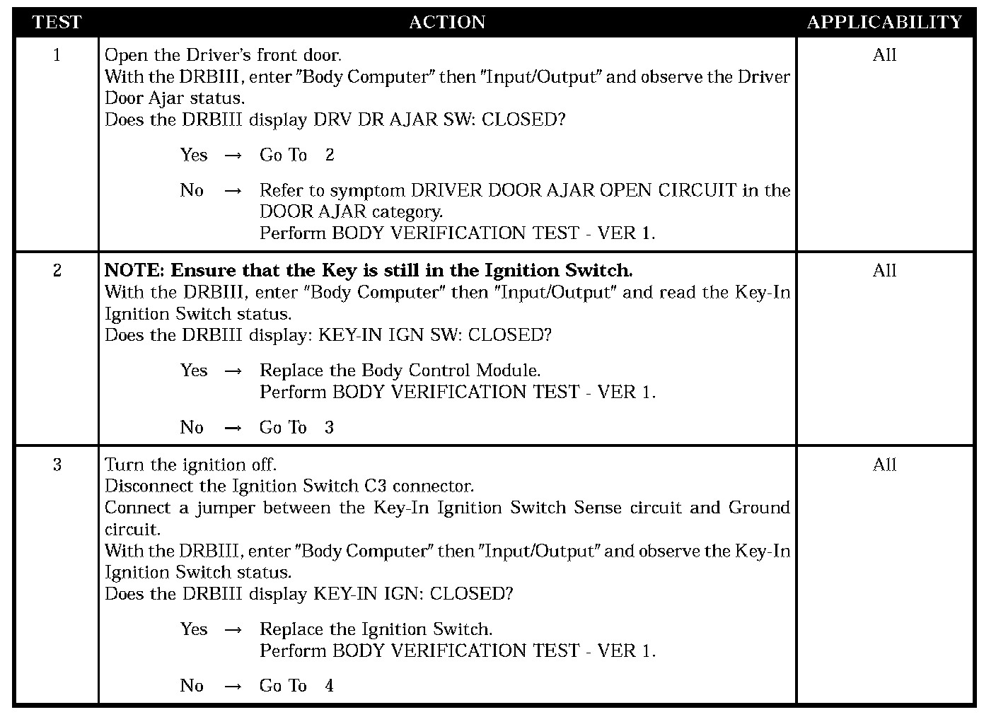 - Observe the key-in ignition switch status