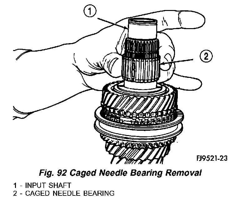 (3) Remove caged needle bearing (2) (Fig. 92).