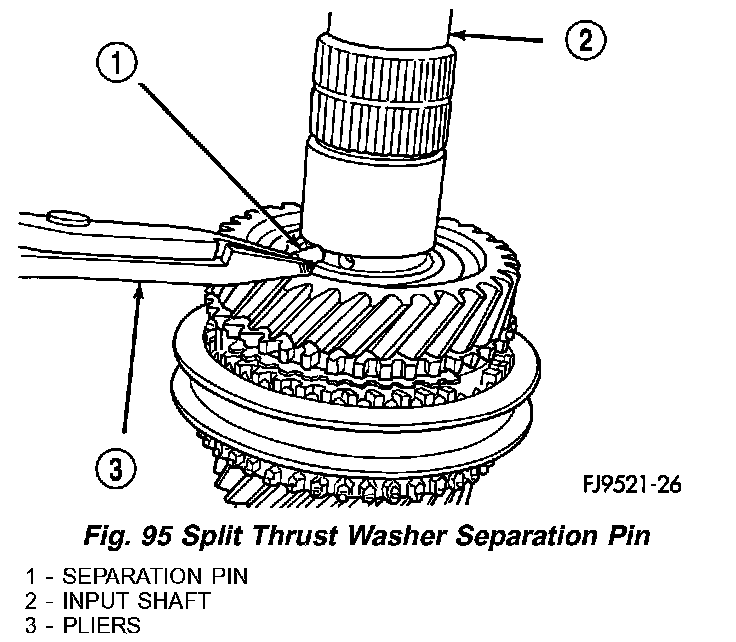 (6) Remove split thrust washer separation pin (1) (Fig. 95).