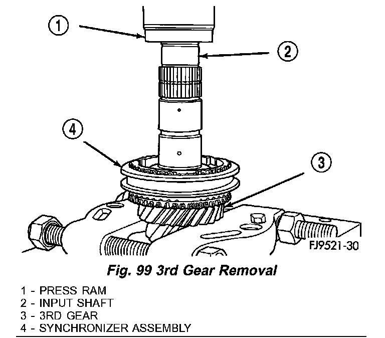 (2) Remove synchronize (4) (Fig. 91) and gear using shop press (1).