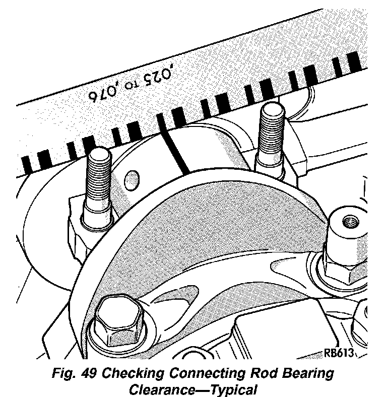 1. For measuring Main Bearing Clearance and Connecting Rod Bearing Clearance use plastigage (Fig. 49). Refer to Engine Specifications for bearing clearance specifications.