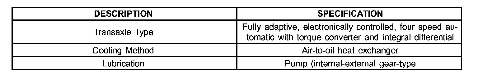 40TE AUTOMATIC TRANSAXLESPECIFICATIONS - 40TE TRANSAXLE40TE AUTOMATIC TRANSAXLE GENERAL SPECIFICATIONS: