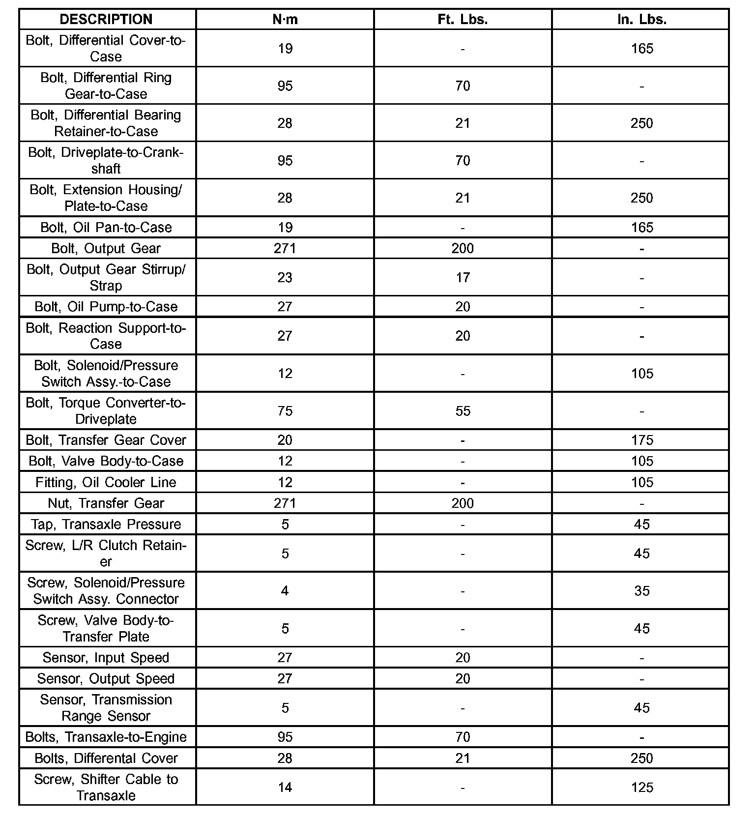 40TE AUTOMATIC TRANSAXLE TORQUE SPECIFICATIONS (PART 2):