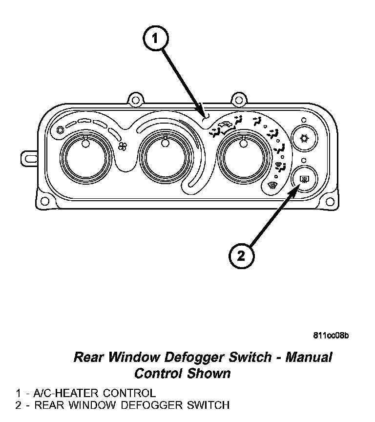 The EBL system will be automatically turned off after an initial programmed time interval of about ten minutes. After the initial time interval has expired, if the rear window defogger switch is turned on again during the same ignition cycle, the EBL system will automatically turn off after about five minutes. The EBL system will automatically shut off if the ignition switch is turned to the Off position, or it can be turned off manually by pressing the rear window defogger switch a second time.