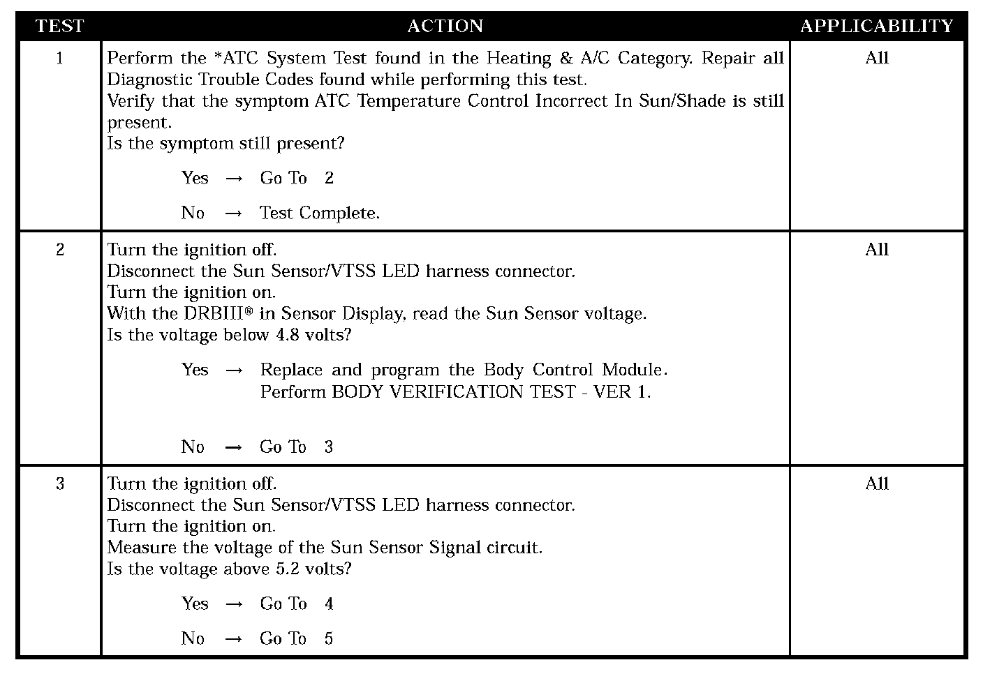 ATC TEMPERATURE CONTROL INCORRECT IN SUN/SHADE