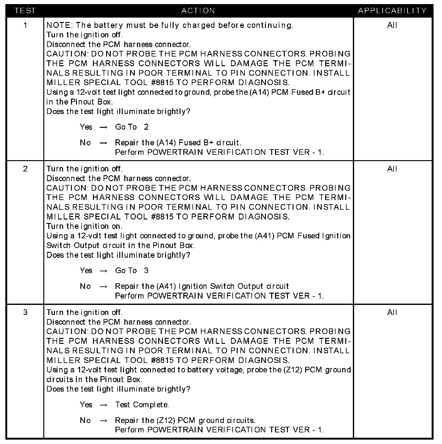 Checking the PCM Power and Ground Circuits