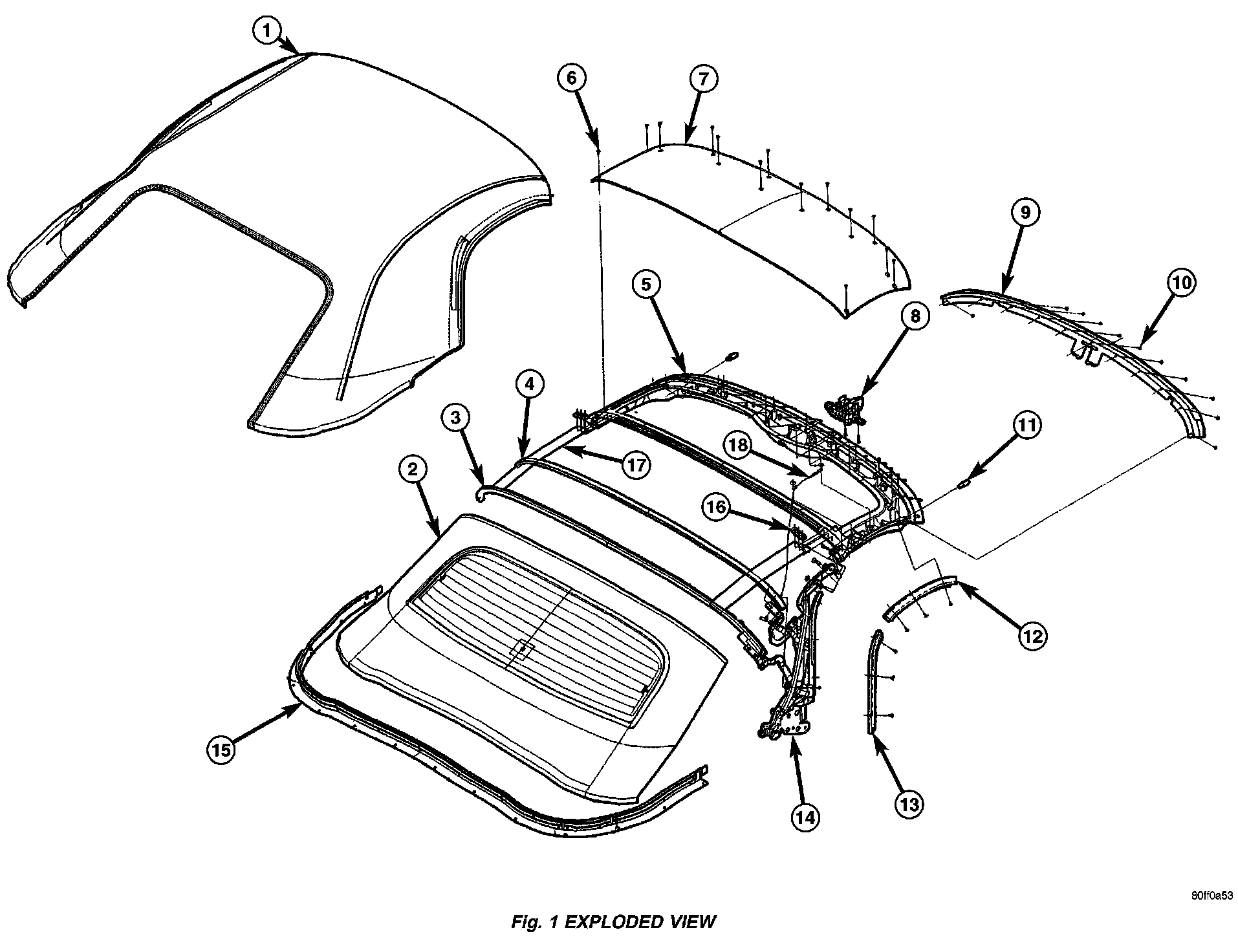 3. Remove the front and rear weatherstrip retainers. (Fig. 1)