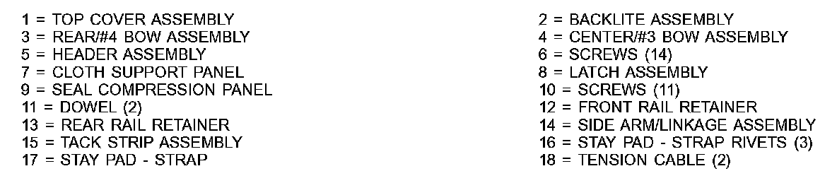 14. Remove the staples from the backlite fabric to the rear/4 bow and remove the backlite.