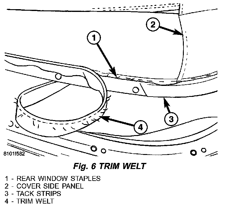 7. Pull off the trim welt and uncover the tack strips. (Fig. 6)