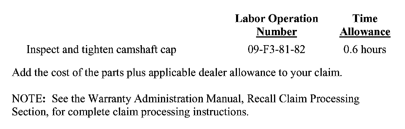 Campaign - Engine Camshaft Cap Bolt Torque: Overview