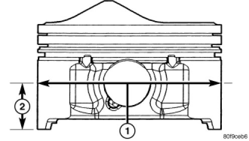 Piston and cylinder wall must be clean and dry. Piston diameter should be measured 90 degrees to piston pin (1).