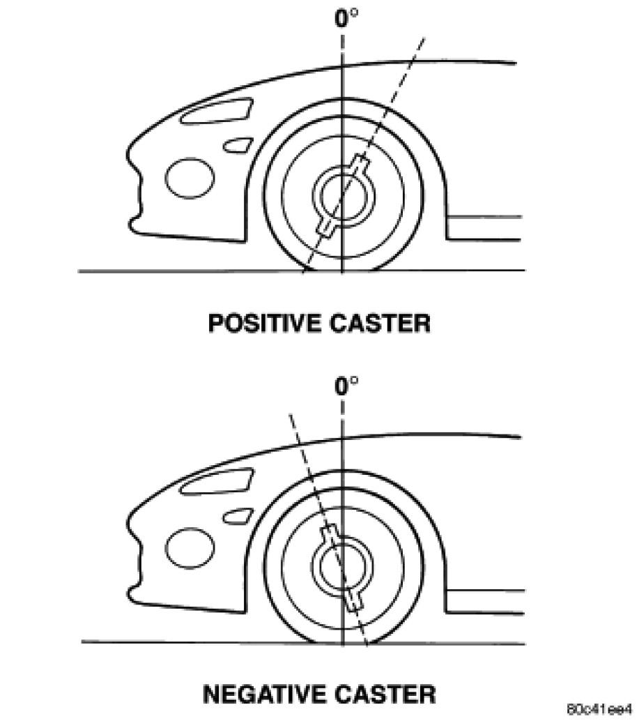 - Rearward tilt (upper ball joint trailing lower) results in a positive caster angle.