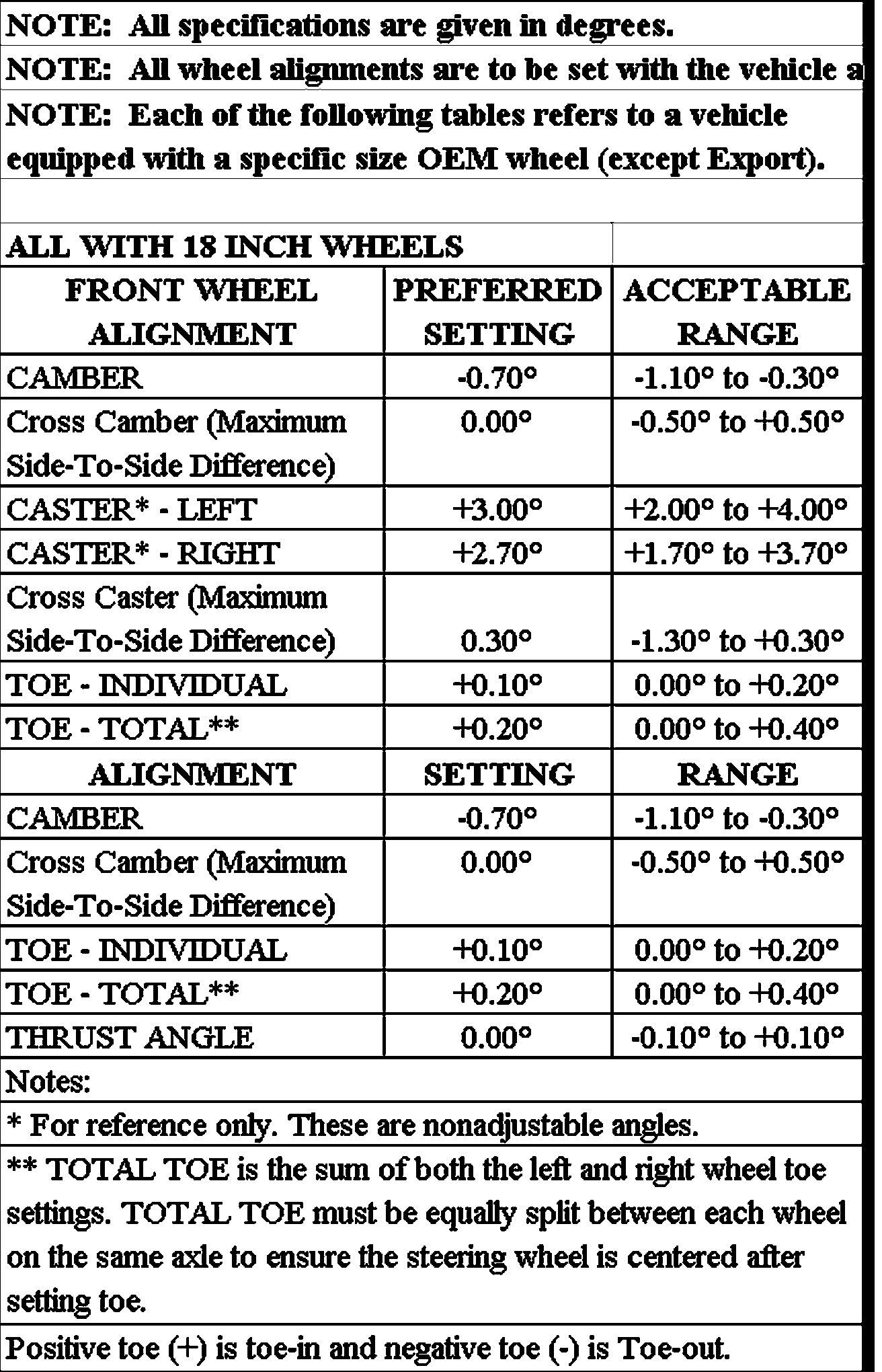 Wheel Alignment Specifications