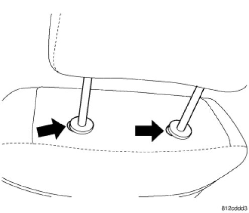 11. Squeeze the locking tab (3) and remove the headrest sleeves (1).