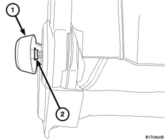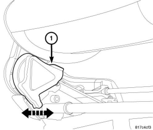 9. Separate the clip fasteners (2) and remove the side shields from the seat cushion frame tabs (1).