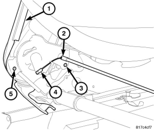 5. Release the cable housing (2) from the seat back frame and disconnect the recliner cable ends (4).
