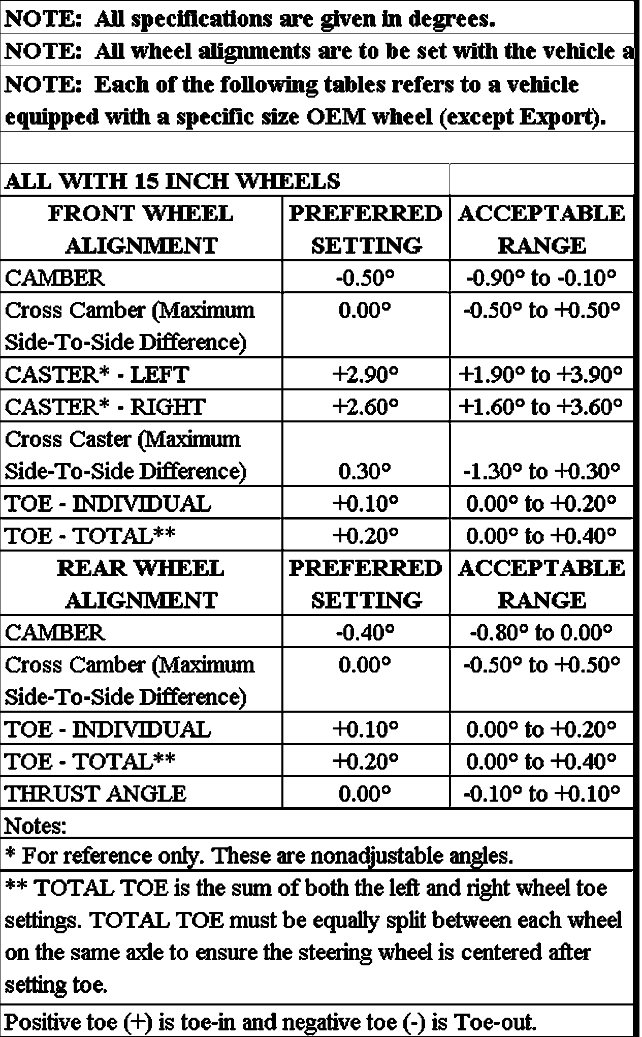 Wheel Alignment Specifications