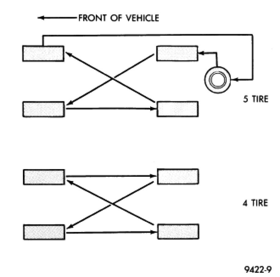 NOTE: Only the four-tire rotation method may be used if the vehicle is equipped with a compact or temporary spare tire.
