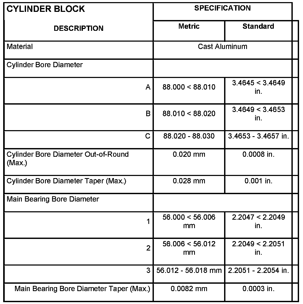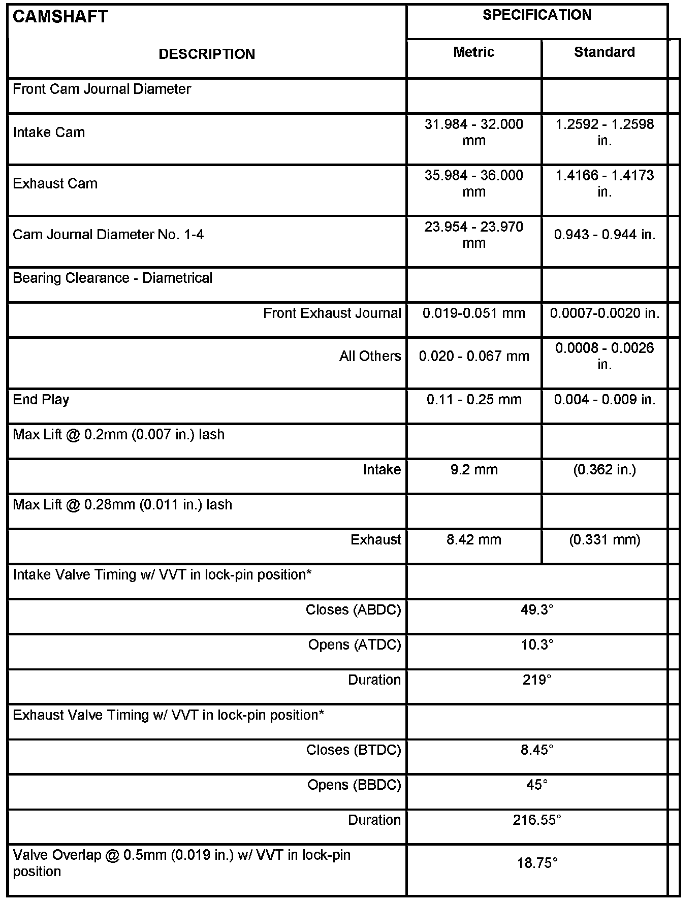 Cylinder Head Camshaft Bearing Bore Diameter
