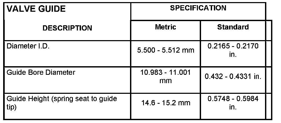 Valve Stem To Guide Clearance: