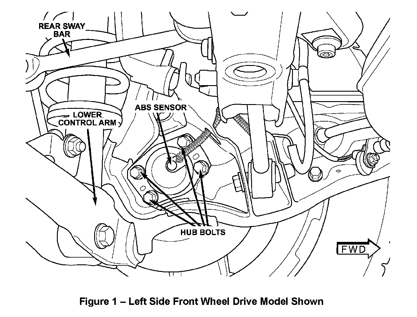1. Lift the vehicle on an appropriate hoist.2. Remove and replace the four hub bolts on each rear wheel one hub bolt at a time (Figure 1). Tighten the new hub bolts to 55 ft.lbs. (75 N.m).
