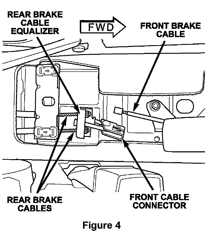 11. Disconnect the front park brake cable from the front cable connector (Figure 4).