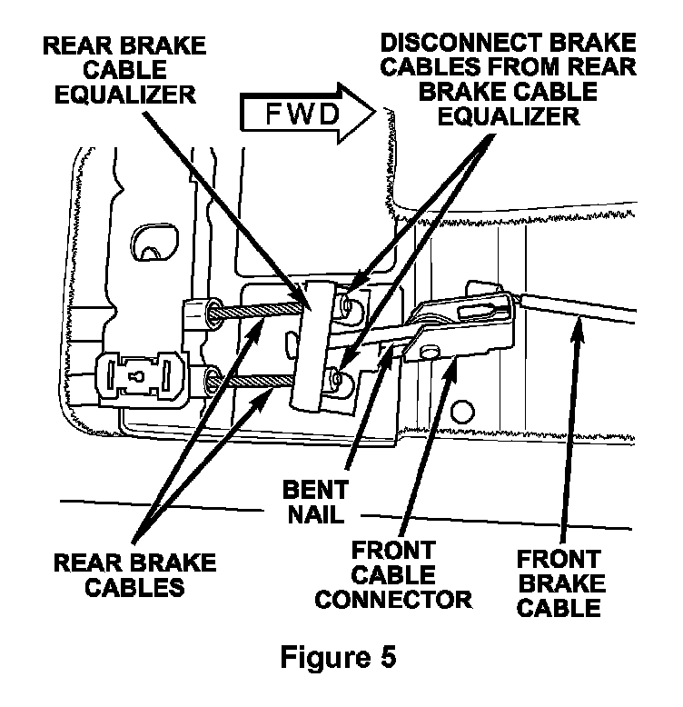 12. Disconnect the rear brake cable equalizer from the rear park brake cables (Figure 5).